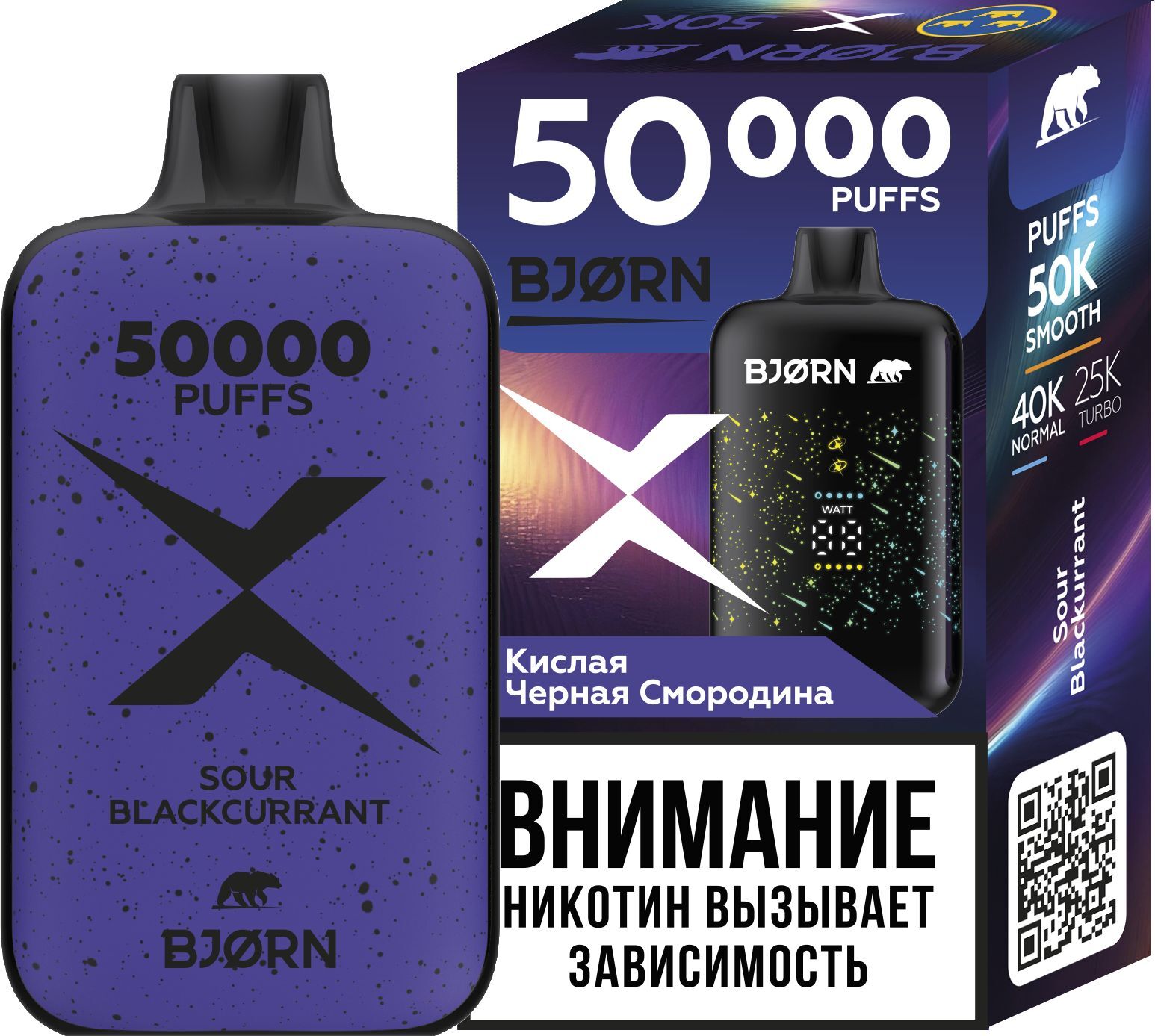 Купить одноразовые электронные сигареты Bjorn X Кислая чёрная смородина - Sour blackcurrant 50000 в Москве и России