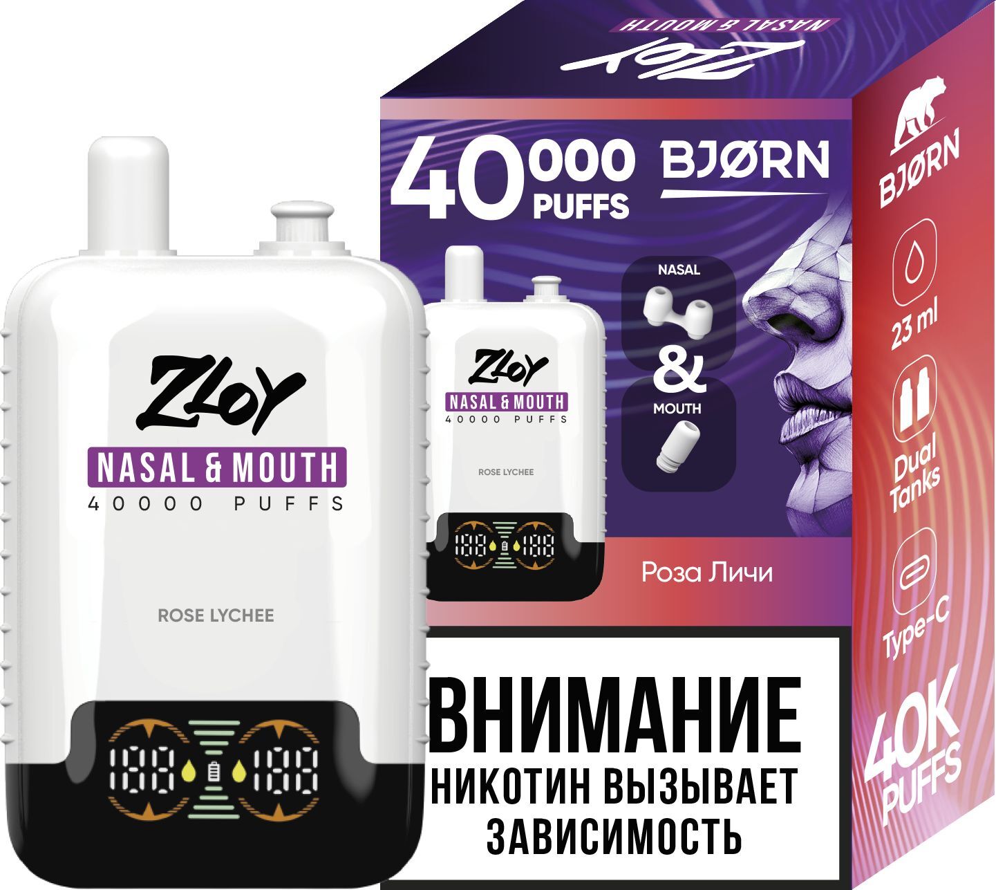Одноразовые электронные сигареты BJORN Zloy Nasal&Mouth Rose lychee - роза-личи 40000 затяжек
