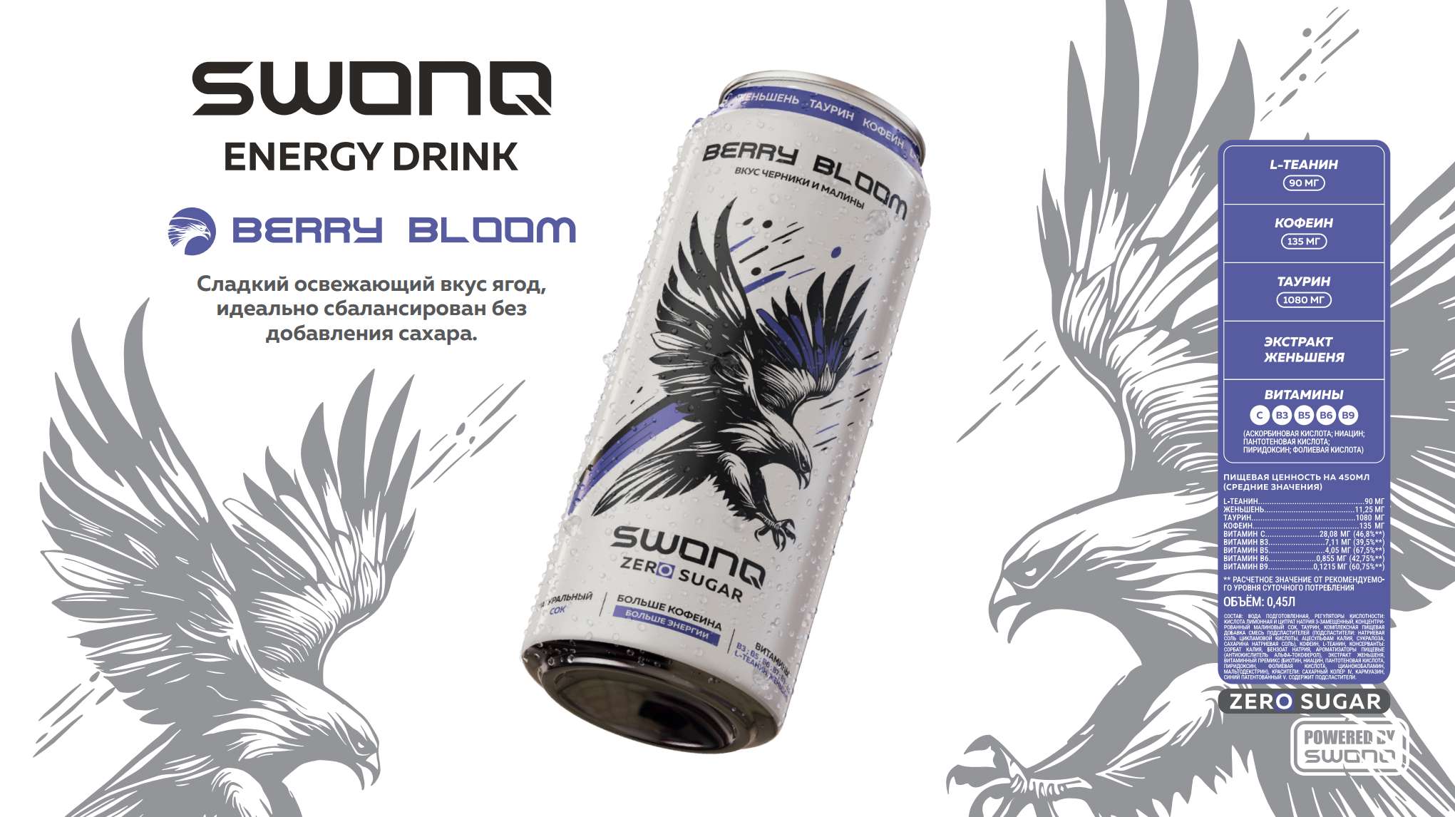 Энергетик Swonq Berry bloom 450мл - со вкусом черники и малины, без сахара